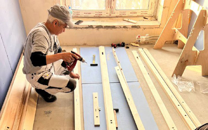 В основе системы пространственный каркас из березовой фанеры. Фанера благодаря своей структуре обладает высокой прочностью и гибкостью. Мы привыкли к этому материалу и воспринимаем его как нечто заурядное, обыденное, но на самом деле березовая фанера невероятно стабильна — коэффициент линейного теплового расширения (КЛТР) фанеры, в частности марки ФСФ, составляет примерно 1,48х10-6 — 3,96×10-6 1/oC-1. Этот показатель значительно ниже, чем у пеноблока (8х10-6 — 10×10-6 1/oC-1) или бетона (10х10-6 1/oC-1)! Только вдумайтесь в это!!!